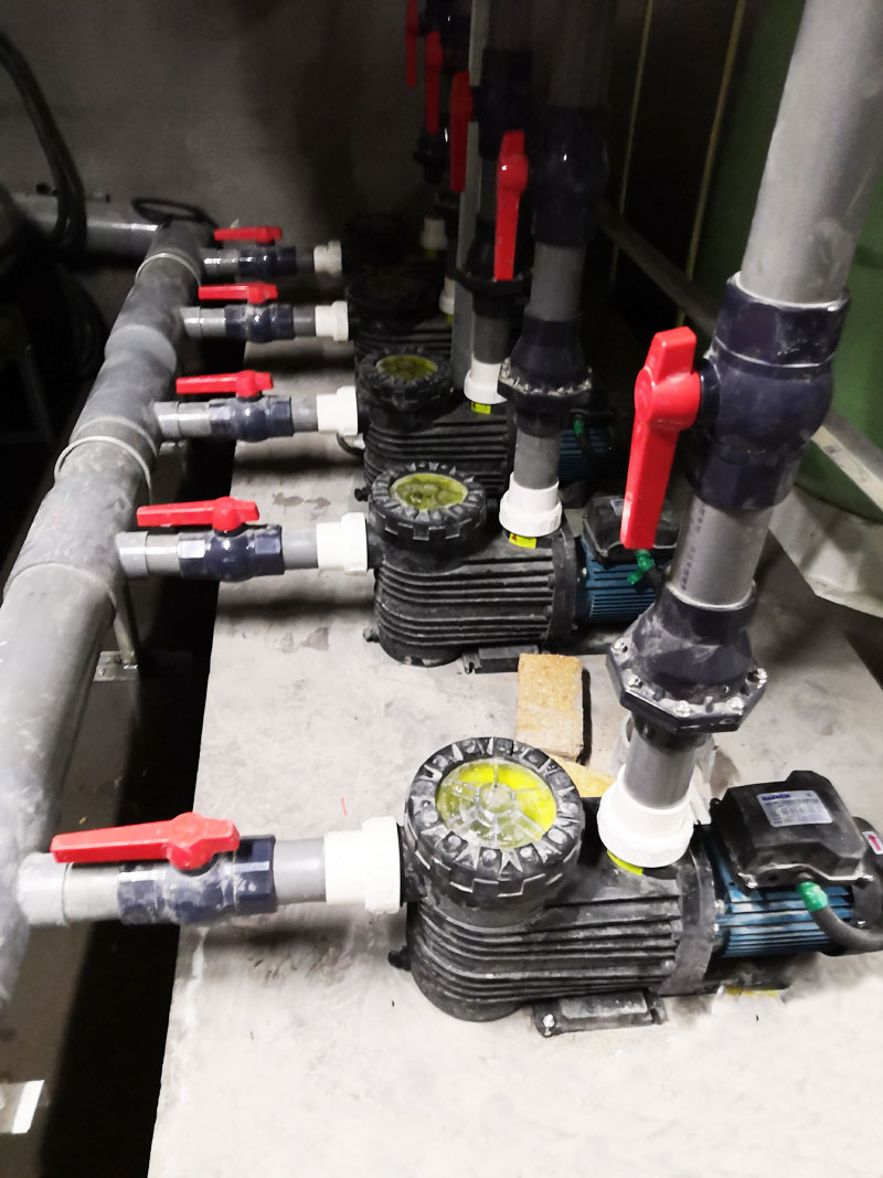天津靜海區獨流鎮某私人會所室內泳池循環系統采用RAYKEN瑞凱水泵、砂缸。